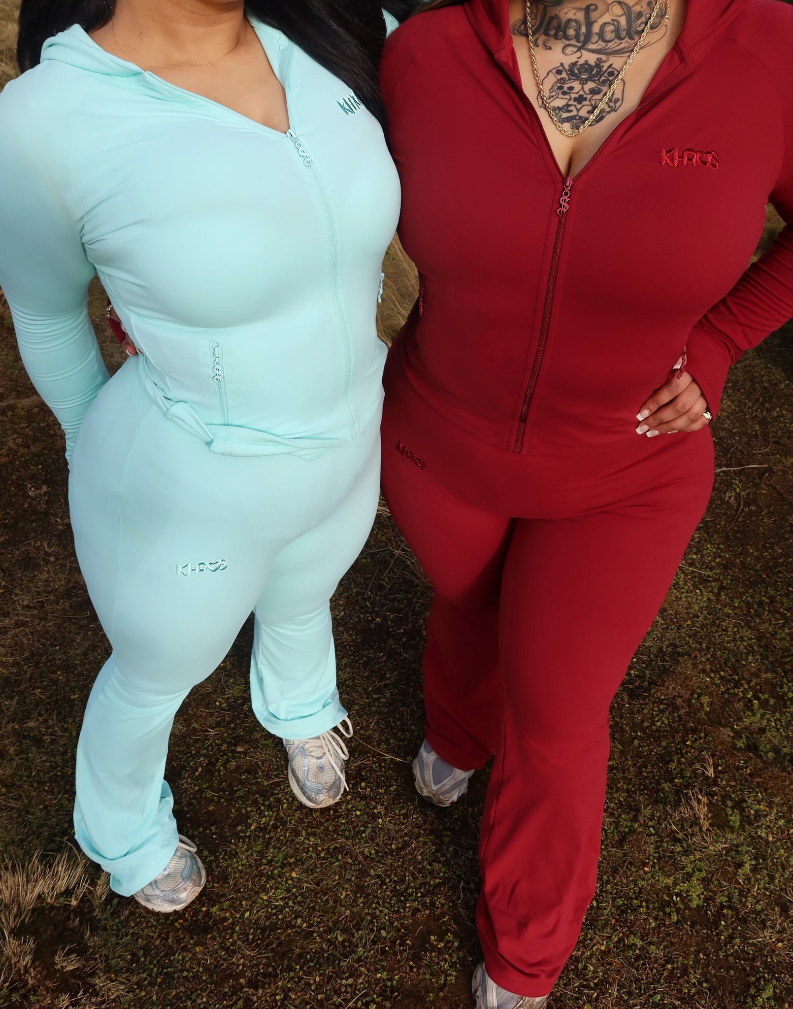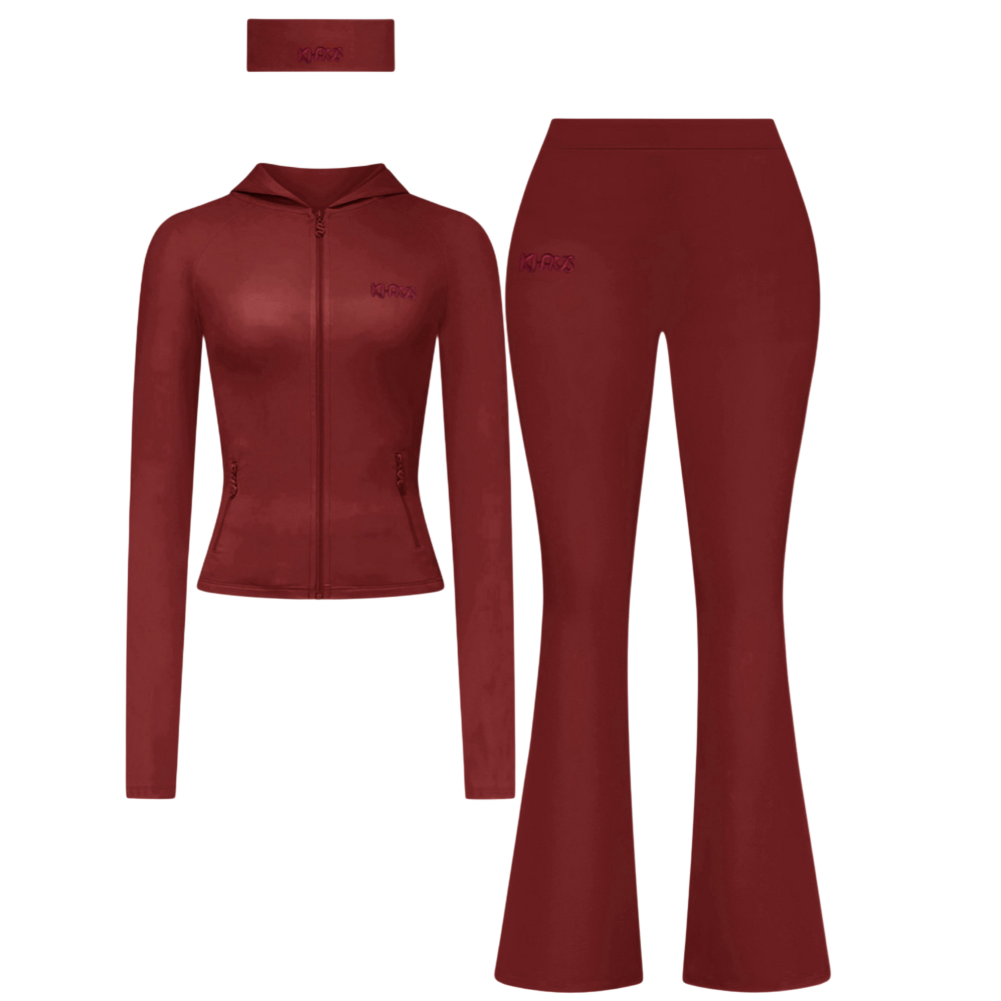 Our Butter Soft Yoga Set, designed for movement, confidence, and sexiness. This 3 piece second-skin set includes a zip-up fitted hoodie, high-rise flared leggings & a matching headband. - All made with our hand-selected butter-smooth fabric that feels like a gentle hug on your skin.