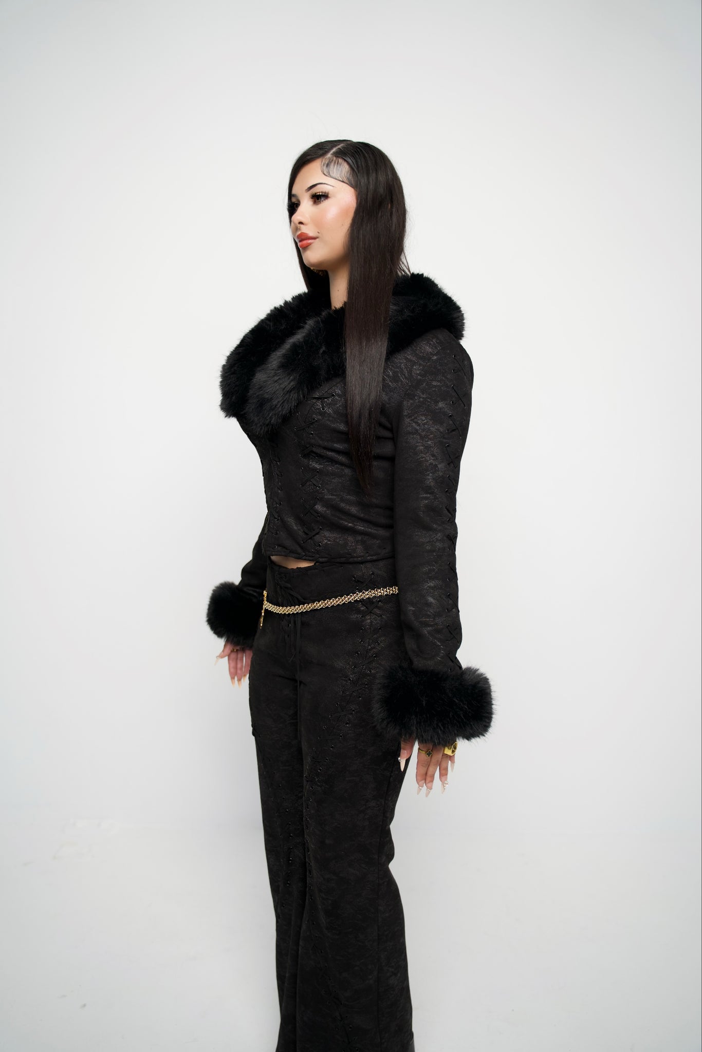 These pants are a true Y2K dream, crafted from ultra-soft, stretch-infused suede & engineered over six months to achieve the perfect contouring fit. Designed to mold effortlessly to your body, they feature a mid–low rise silhouette and hand-installed eyelets that add a touch of artisanal detail. With approximately 50% stretch for enhanced comfort, we recommend choosing your true size, or sizing down if you are between sizes, as these pants are designed to look their best with a more sculpted, body-hugging fit.